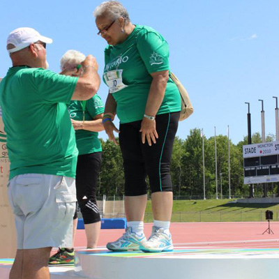 Helen Farinha, a former PMCC patient and heart transplant recipient at TGH, winning a gold medal at the 2014 Canadian Transplant Games in Moncton, N.B (Photo: Helen Farinha).