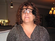 Orly Shamir is the first patient in Canada to receive the Argus II device which she is wearing in this picture. Already, the system has allowed her to detect white and black colours. (Photo: UHN)
