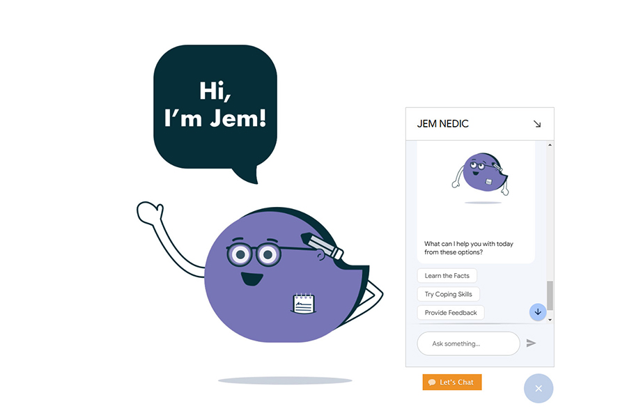 "We want people to know that JEM is not replacing human interaction," says Suzanne Phillips, Program Manager, NEDIC. "Our helpline team is still available every day (Monday to Thursday, 9 a.m. to 9 p.m.; Friday, 9 a.m. to 5 p.m.; Saturday and Sunday, 12 p.m. to 5 p.m. All times EST.).