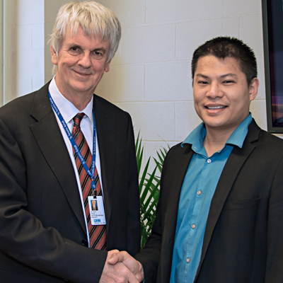 Above, Geoff Fernie, Institute Director, Toronto Rehab Research, left, with Michael Tsang, Managing Director, Handy Audit. (Photo: UHN)HandyAudit is the latest product to be launched into the marketplace by Toronto Rehab Research.